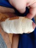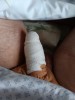 Ich zieh die Vorhaut zurück, lege den breiten Kern an und wickle sie dann um meinen Penis, sodass die Eichel dauerhaft freigelegt ist und da der Kleber natürlich hautverträglich ist und nicht aggressiv, ist es ein schönes Tragegefühl.